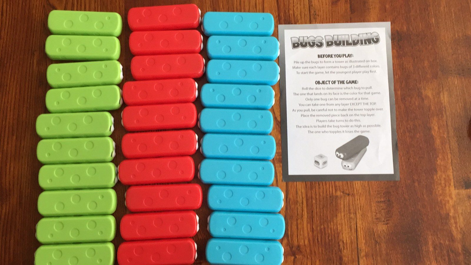 Build them up, count them, create bug patterns with the colours, or just build a tower to play the game. Suitable for 3+ years