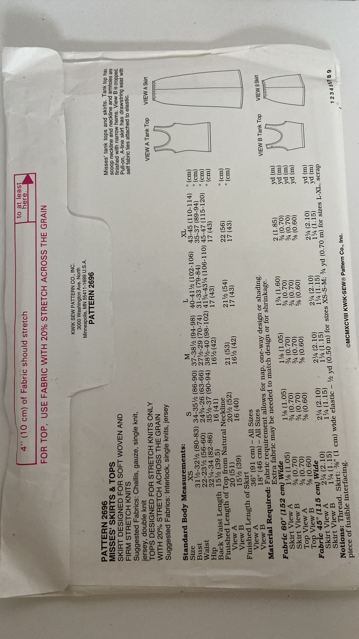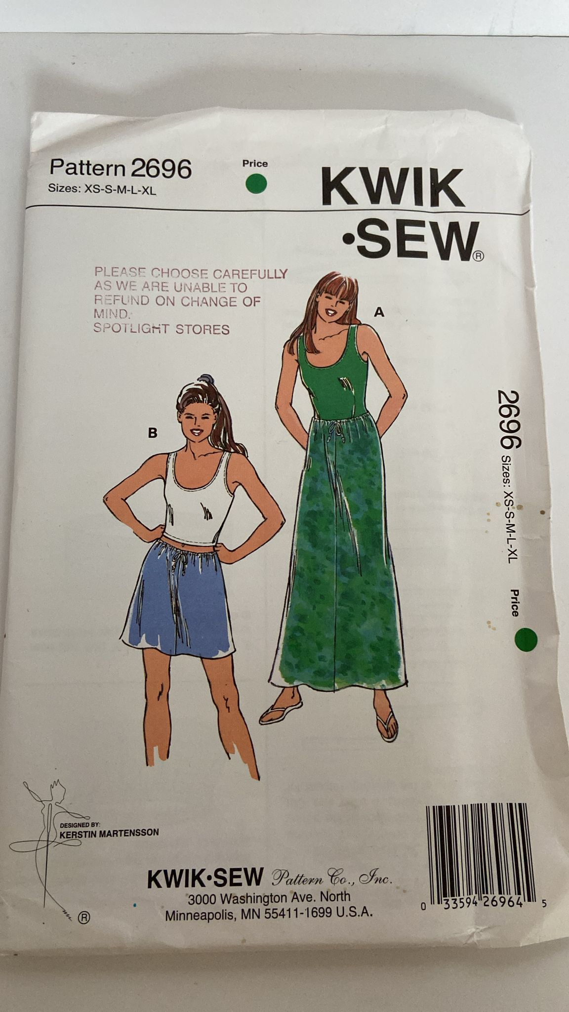 Kwik Sew 2696 Tank Top and Skirt (XS – XL)
