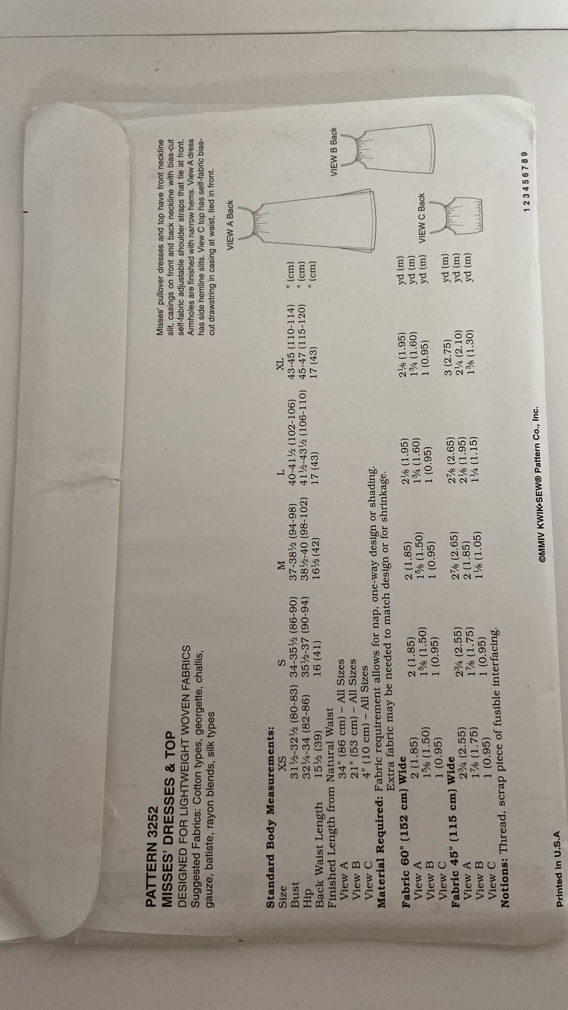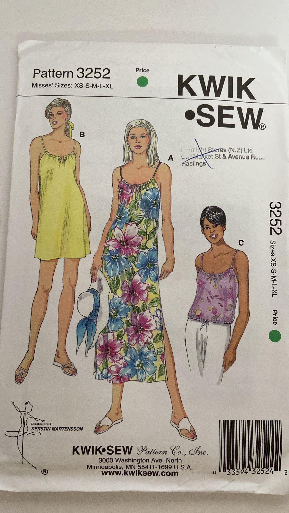 / Kwik Sew 3252 Pullover Dresses & Top (XS – XL)