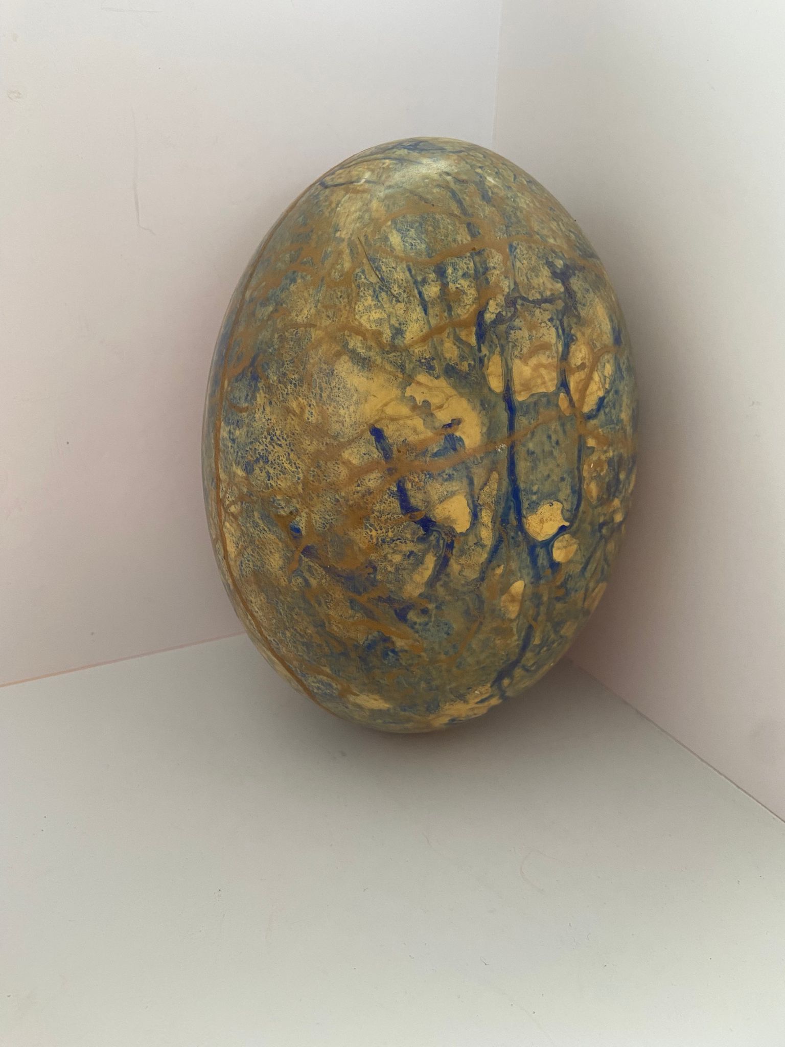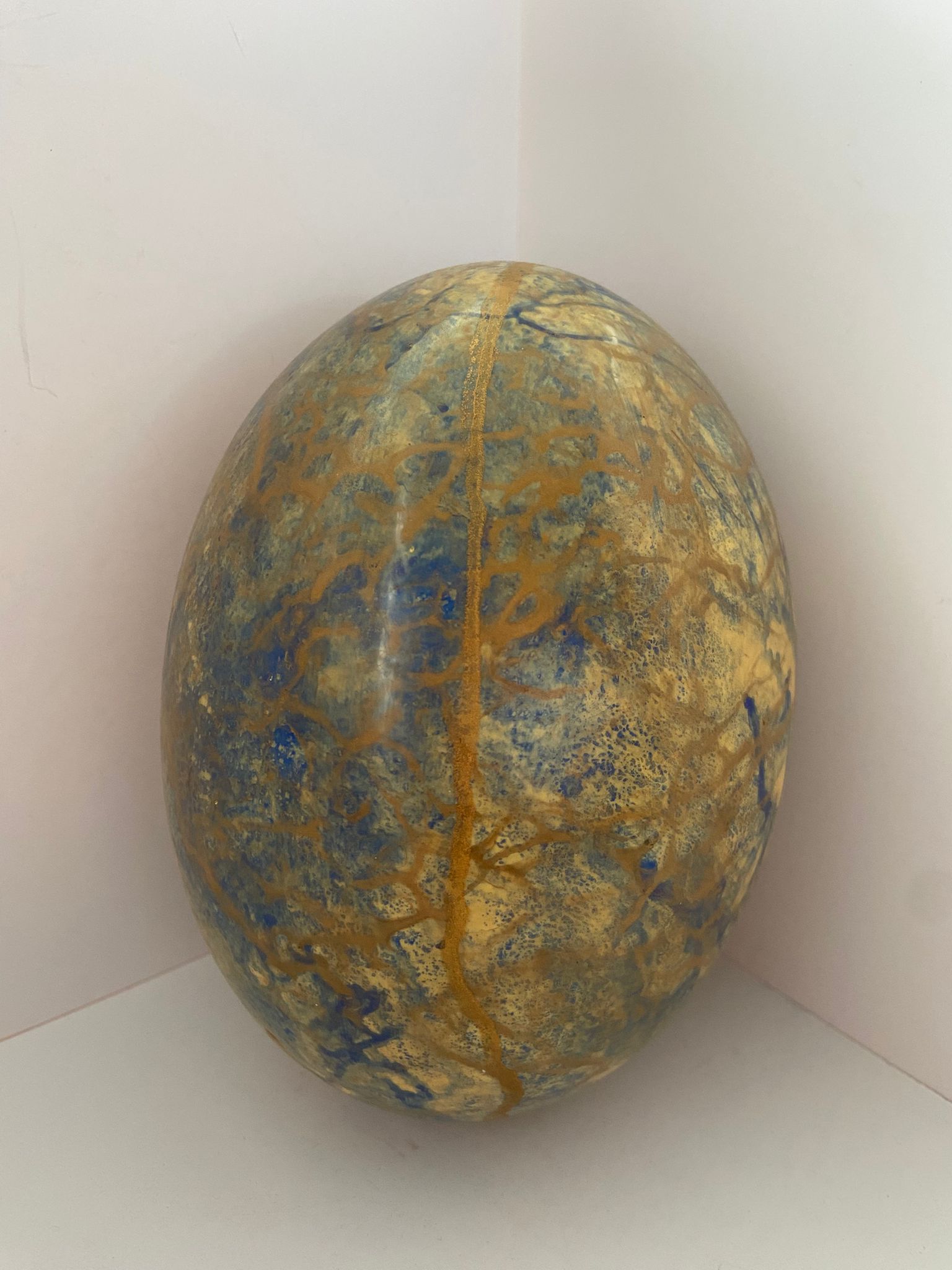 Painted Ostrich Egg – Gold/Blue Tones