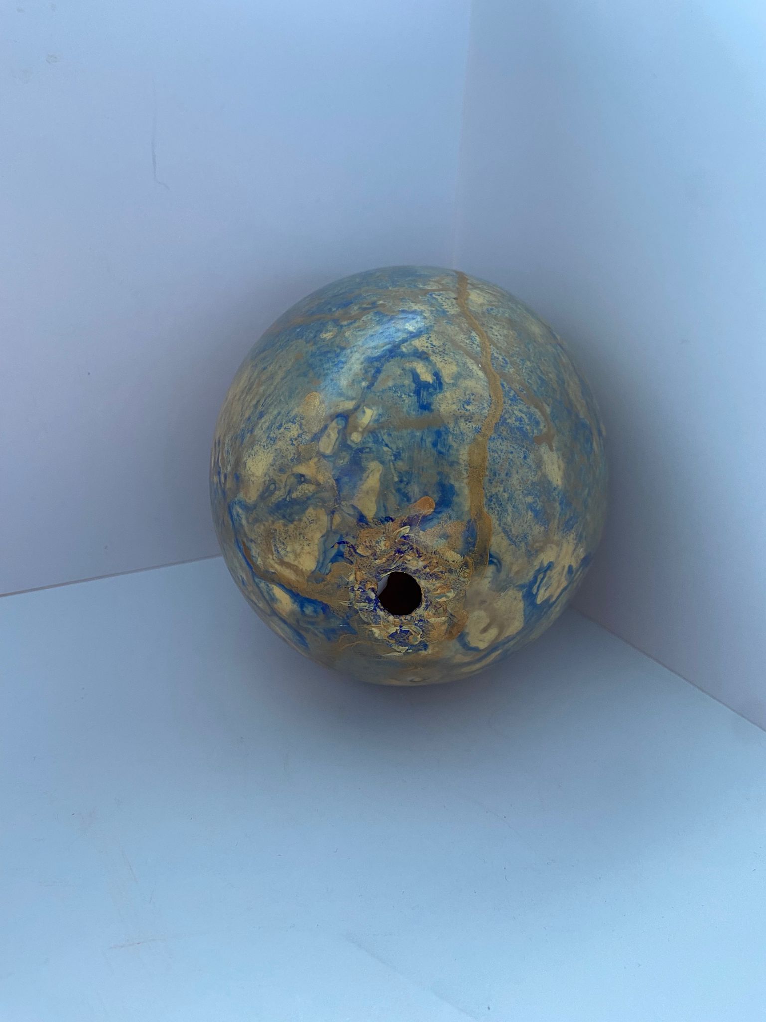 Painted Ostrich Egg - Gold/Blue Tones quantity
