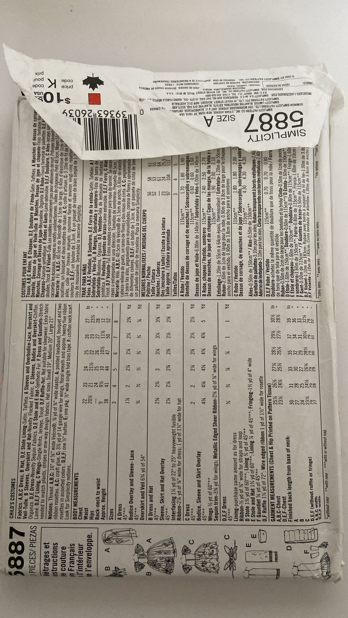 Simplicity 5887 Child’s Costumes (Size A 3-8)