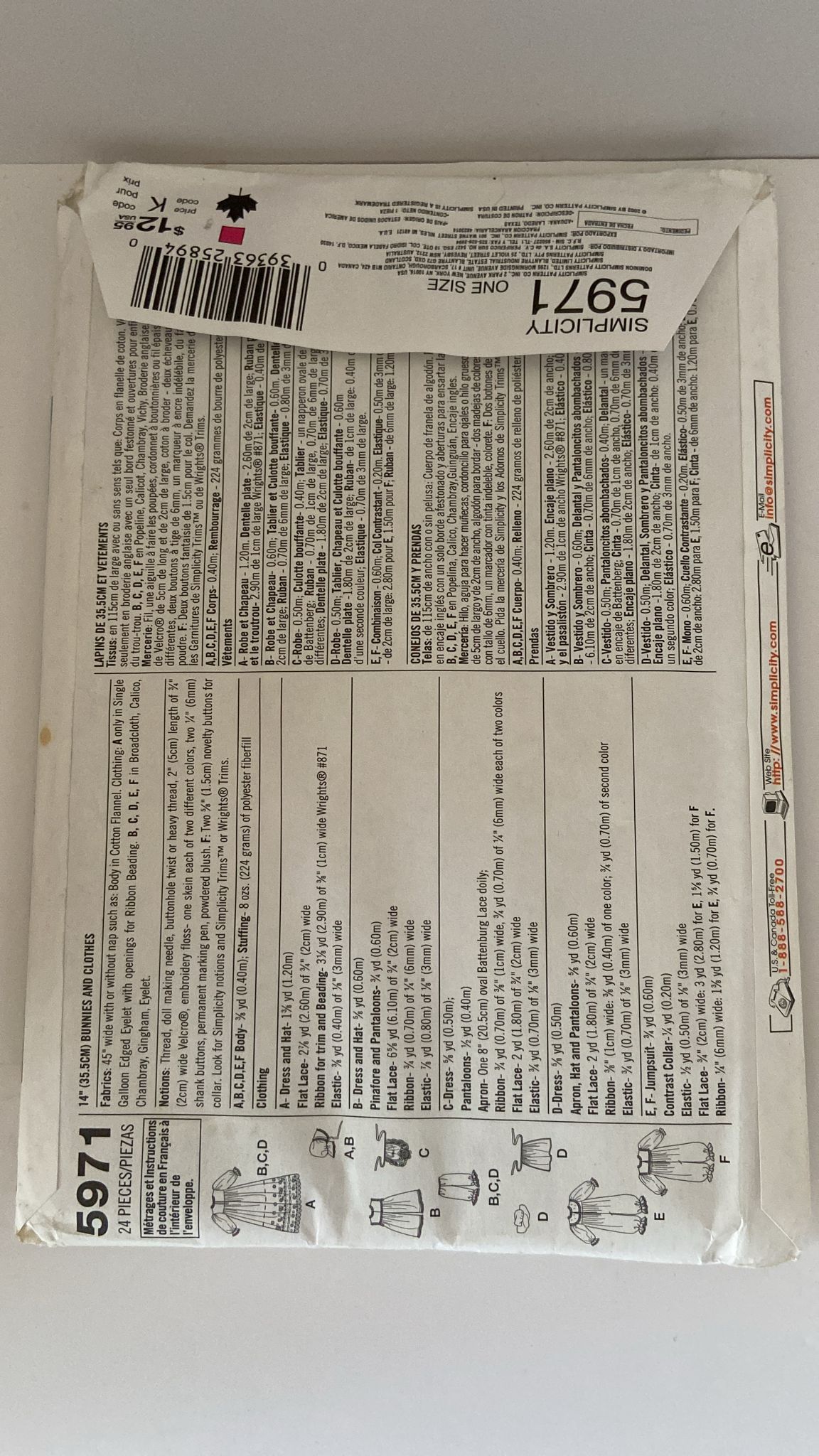 Simplicity 5971 Faith Van Zanten Bunnies & Clothes